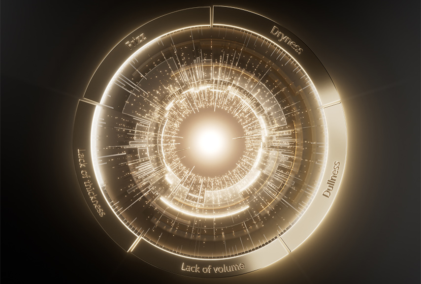 Après des décennies de recherche scientifique approfondie, L’Oréal est parvenu à décrypter la science complexe du vieillissement capillaire. Kérastase a identifié 5 signes clés des cheveux matures : sécheresse, ternissement, frisottis, perte de volume et de densité. Pour atténuer visiblement ces signes, nous vous présentons Chronologiste : une routine experte qui transpose directement les avancées de la science du soin de la peau au soin des cheveux.